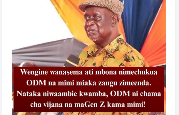 Speaking during a public event, Oburu said, “Wengine wanasema ati mbona nimechukua ODM na mimi miaka zangu zimeenda. Nataka niwaambie kwamba, ODM ni chama cha vijana na maGen Z kama mimi!”