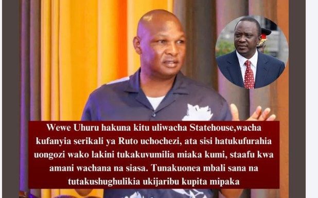 “Wewe Uhuru hakuna kitu uliwacha State House. Wacha kufanyia serikali ya Ruto uchochezi. Ata sisi hatukufurahia uongozi wako lakini tukakuvumilia miaka kumi. Staafu kwa amani, wachana na siasa,” Farouk said.